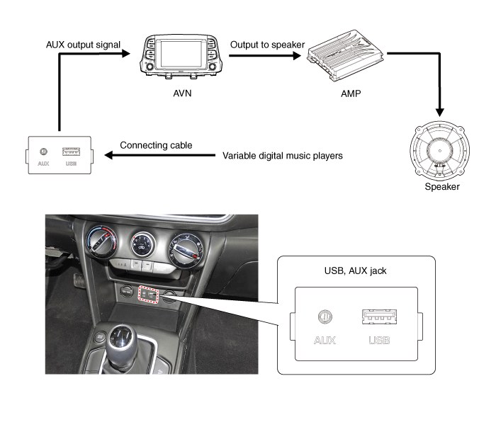 AUX jack Repair proceduresHyundai Kona (OS) 2018-2025 Service Manual: Audio Unit Repair procedures