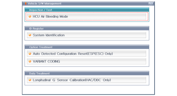 Select the "vehicle model" and "ABS/ESC" on GDS vehicle selection screen,