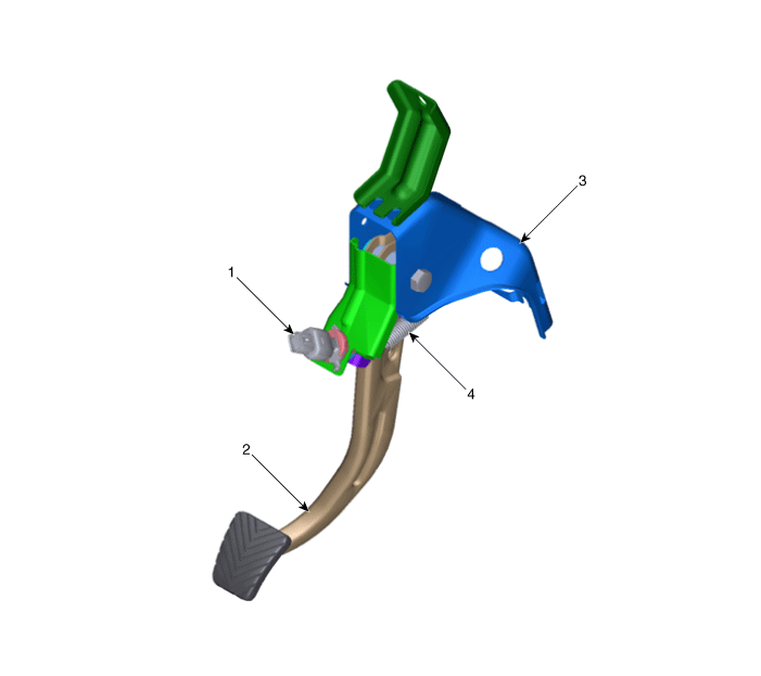 | 1. Stop lamp switch 2. Brake pedal arm assembly |
