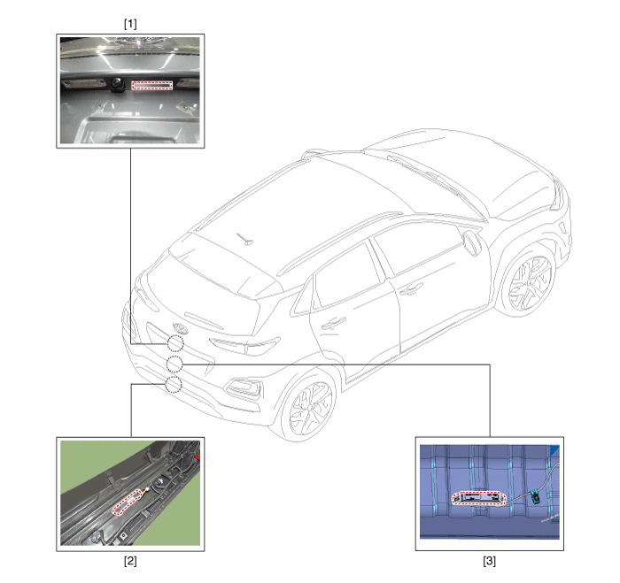 | 1. Interior antenna 1 2. Interior antenna 2 3. Door outside handle / Door antenna |