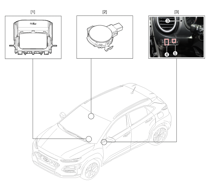 | 1. Head Up Display (HUD) 2. Light sensor 3. Cluster |