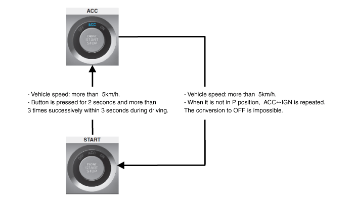 ACC mode shall move to "START" by pressing SSM for more than 10
