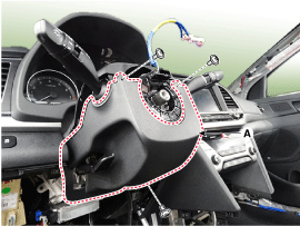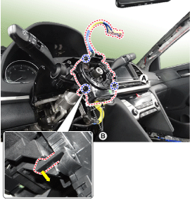 Remove the clock spring (A) after disconnecting the clock spring connectors