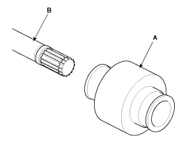 Seperate the dynamic damper (A) from the shaft (B) carefully.