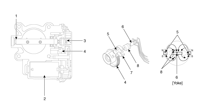 5. Magnet 6. Hall IC 7. Yoke 8. Stator |
