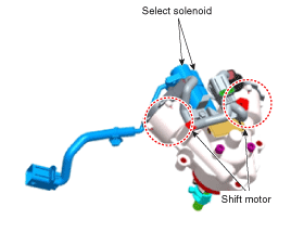 Gear actuator shift motor and select solenoid receive signals from TCM