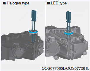 5. To aim the low beam left or right, turn the driver clockwise or counterclockwise. To aim the low beam up or down, turn the driver clockwise or counterclockwise.