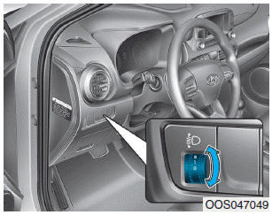 To adjust the headlamp beam level according to the number of the passengers and loading weight in the luggage area, turn the beam leveling switch.