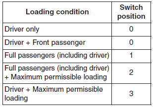 The higher the number on the switch position, the lower the headlamp beam level. Always keep the headlight beam at the proper leveling position, or headlamps may dazzle other road users.