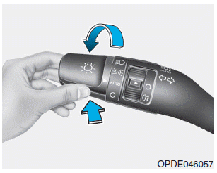 1) If the light switch is pushed away when the High Beam Assist (HBA) is operating, the High Beam Assist (HBA) will turn off and the high beam will be on continuously.