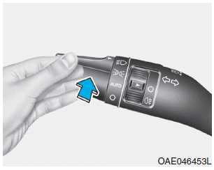 To turn on the high beam headlamp, push the lever away from you. The lever will return to its original position.