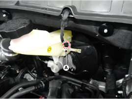 Loosen the flare nuts and then separate the brake tube (A) from the