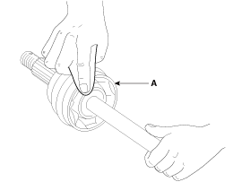 Remove the driveshaft caulking nut (A).