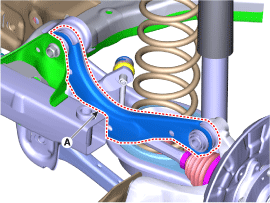 Loosen the bolt and nut (A) and then separate the rear lower arm assembly.