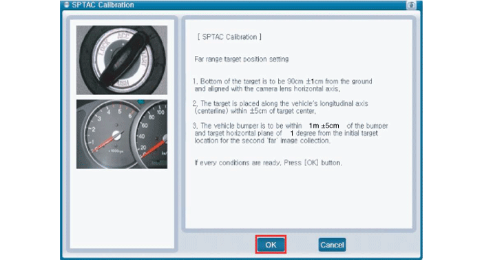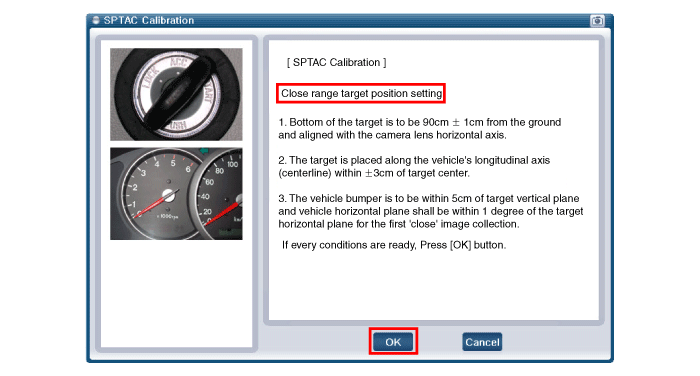 camera by aligning the calibration target (SST: 09890-3V100) with the vehicle
