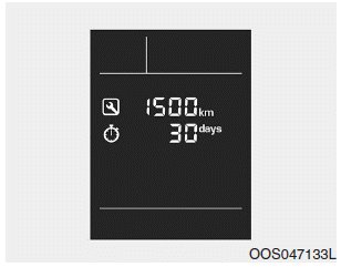 If the remaining mileage or days is below 1,500 km or 30 days, the service reminder will be displayed with a warning sound for a few seconds each time you turn the ignition switch to the ON position.