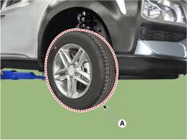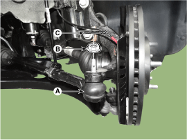 Loosen the lower arm nut (A) and then remove the lower arm ball joint