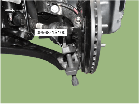 Disconnect the stabilizer link with the front strut assembly after loosening