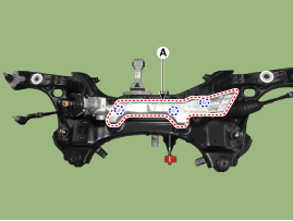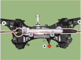 Remove the steering gearbox (A) from the front sub frame by loosening